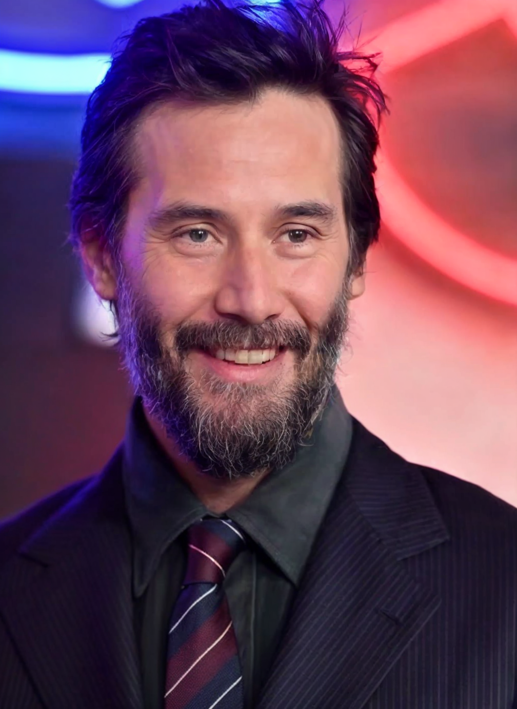 Reeves, quant à lui, âgé de 60 ans, était élégant dans un costume noir classique, agrémenté d’une chemise et d’une cravate colorée.